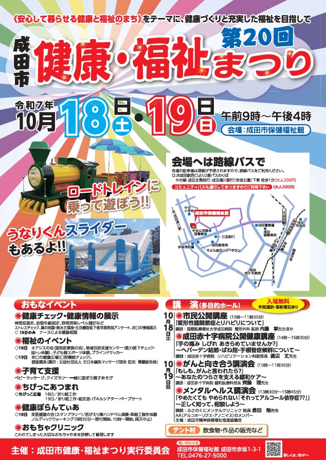 19 10月 【成田市健康・福祉まつり】 Posted at 00:00h in ブログ by mano0505 お天気にも恵まれて、大盛況でした。明日もやっています。小さい子からお年寄りまで楽しめるイベントがたくさんあります。お時間があれば皆さんもお越しください。