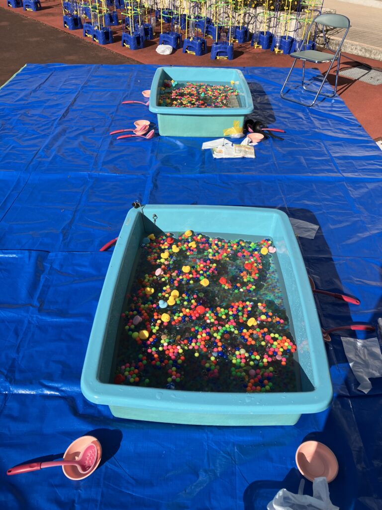 ストラックアウト、キック版ストラックアウト、バスケットボールシューティング、缶バッジづくり、スーパーボールすくい、射的など、様々なゲームやアトラクションが盛りだくさん。