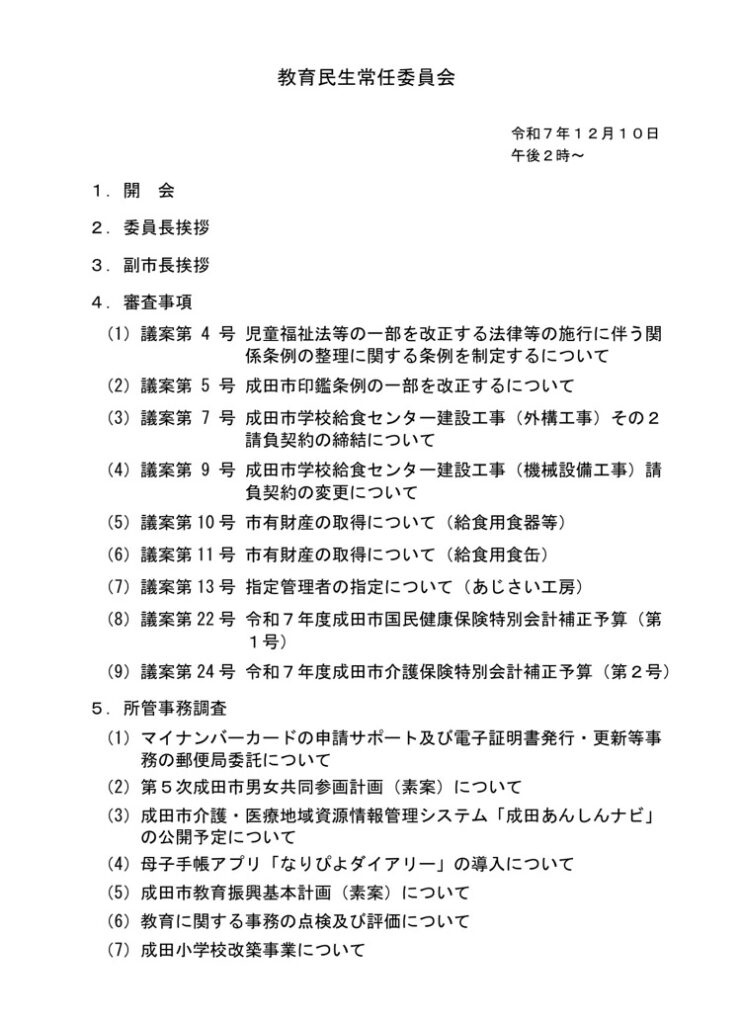 私は、「男女共同参画計画(素案)」及び「成田市教育振興基本計画(素案)」について質問しました。