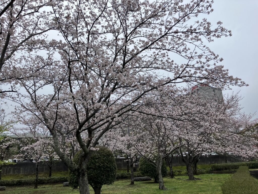 駐車場に戻って気づきましたが、市役所脇の小さな公園の桜が8分咲き。